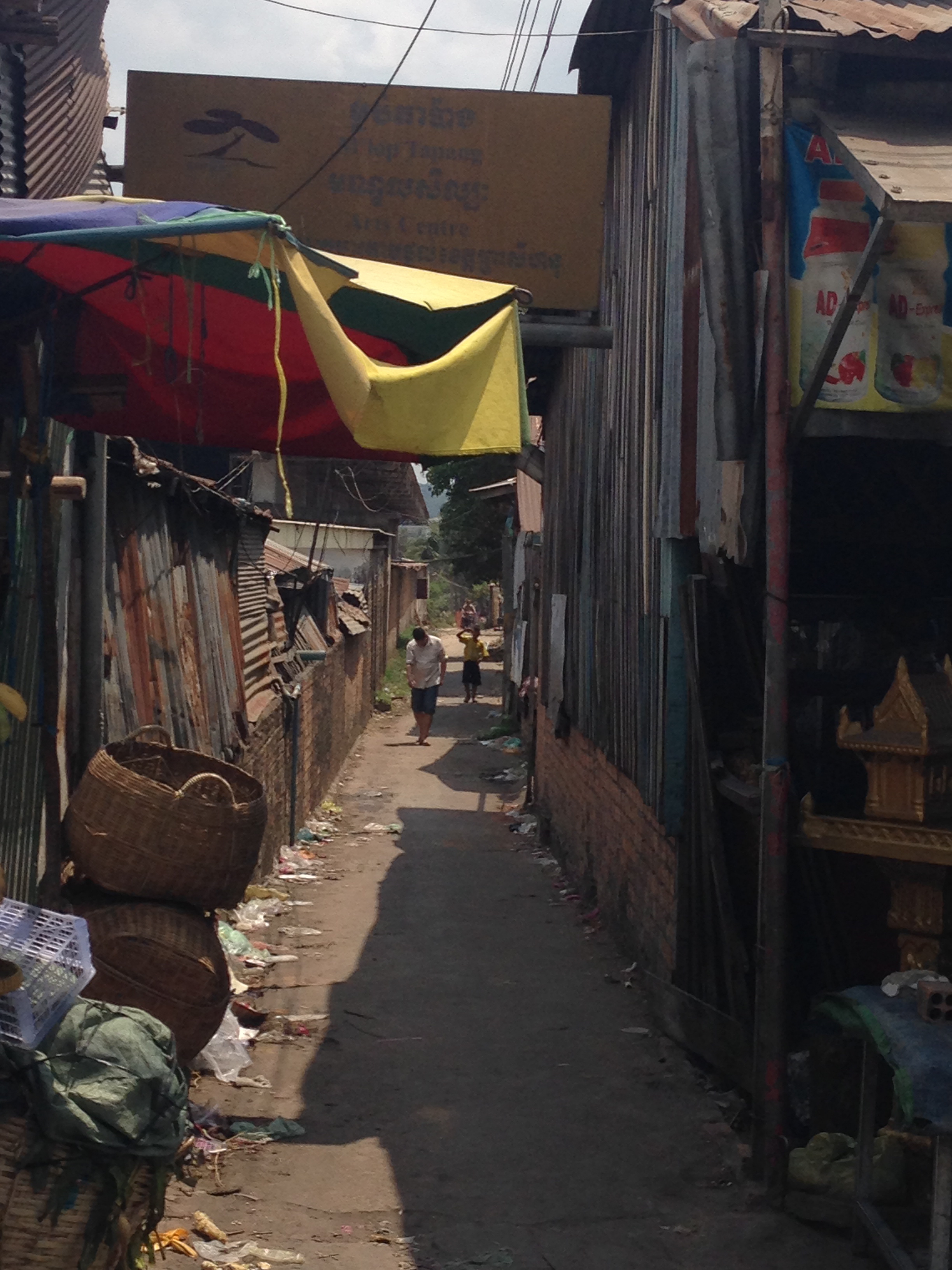 As the shuttle bus approached the Independence Beach Resort, tuk tuk and taxi drivers began to chase the bus, all holding signs saying that they would take us all over. They crowded so tightly by the door of the coach that many were having trouble stepping out. Francis made it clear that he was NOT in the mood to deal with the shoving and haggling today, but I didn’t mind. As we were towards the back of the coach, I had a bit of time to survey the crowd of drivers shoving and yelling out prices. I noticed one guy kind of hanging back. He was good looking young man, calm, and didn’t appear to be much into this mad shoving market taking place. I made eye contact with him, and he just pointed to his sign and I nodded. As we stepped out, everyone was yelling and shoving, I looked over their heads and saw my guy who pushed his way over to us. I showed him that we wanted to go to the market and the Wat Leu. He acknowledged, I said US$15, he agreed and we were off. It was amazing, as soon as the deal was done, everyone fled for other potential customers.